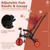 ● Adjustable Push Handle and Canopy: Equipped with a canopy which can be adjusted into different angles, the tricycle creates a cozy environment free of heavy sunlight for kids. Moreover, the push handle can be adjusted in three different positions from 34" to 37.5", satisfying various needs of parents and kids.
