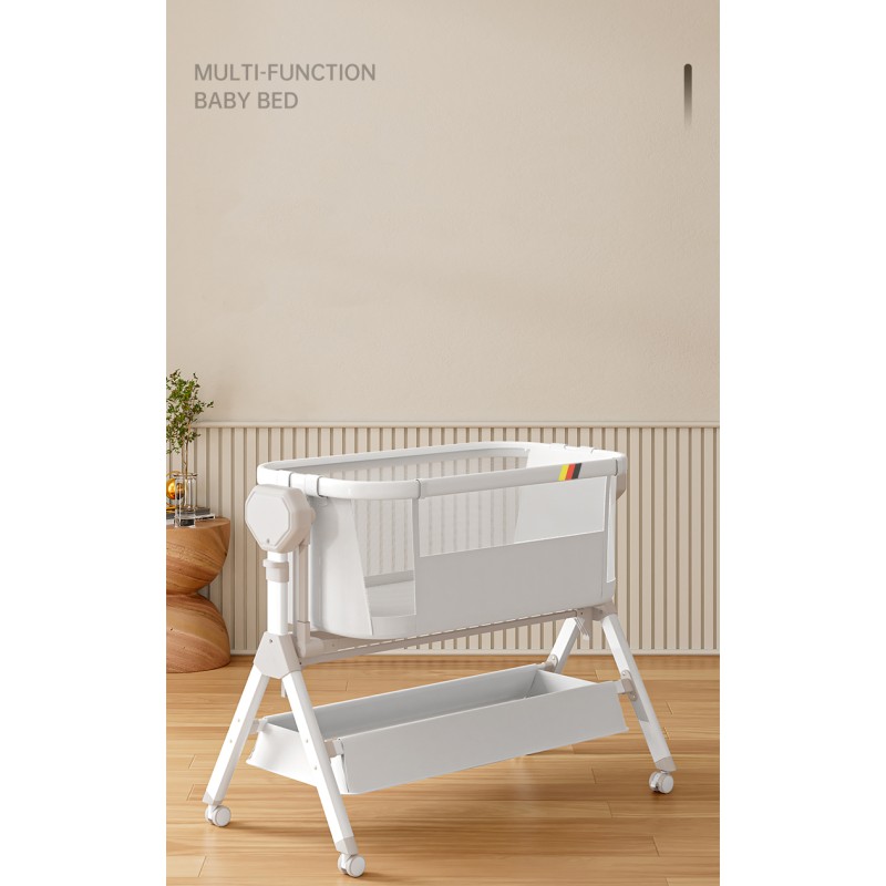 The SteAnny Rocking Crib is designed for newborns up to 6 months, crafted from a lightweight aluminum alloy and carbon steel frame with soft, skin-friendly linen cotton fabric. Its removable, easy-to-clean fabric ensures convenience. One side of the crib opens to connect with the parent’s bed, making it easy to care for your baby. The crib also includes a spacious storage basket underneath for keeping baby essentials.